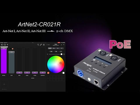 The Pknight artnet box is a 2 universe Ethernet to DMX converter.with Poe and truss mountable features,It is a very cost efficient device especially for pixel related applications.With the cost calculated to about $65 per universe, it has never been more affordable to build a multi universe project.